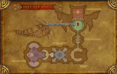 Der fünfte Boss im Herz der Angst befindet sich nur einen Raum vor der Großkaiserin Shek’zeer. Un’sok ist ein brillanter Alchemist und sehr gut im Umgang mit Bern. Durch die Nähe zur Kaiserin ist er erheblich durch das Sha verseucht. Aus Sicht der Schwierigkeit klassifiziere ich den Boss als MITTEL. Allerdings ist durch die Mechanik des Lebenden Bern´s wird die Schwierigkeit eine Stufe angehoben.